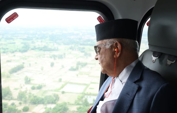 प्रधानमन्त्रीले हेलिकोप्टरबाट अवलोकन गरे मधेसको सुख्खा क्षेत्र (तस्वीर)